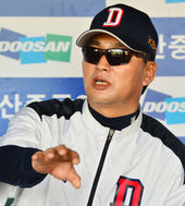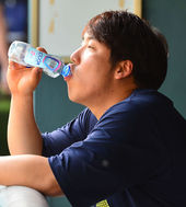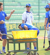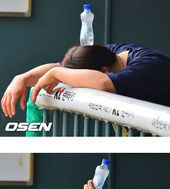 2013.05.23 16: 38김현수,'더운데 생수병을 머리 위에 올려볼까요?'