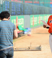 2013.05.23 17: 05김태균,'이렇게 더운날 반사판까지'