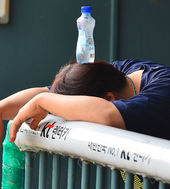 2013.05.23 16: 20김현수,'머리 위에 생수병을 올리면 시원해질까?'