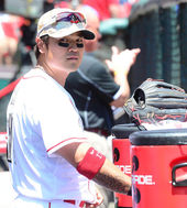 2013.05.28 01: 22신시내티 레즈 덕아웃, 추신수의 헬멧