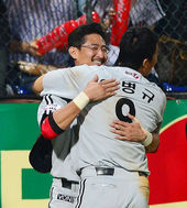 2013.06.02 21: 36포수 문선재,'김기태 감독과 뜨거운 포옹!'
