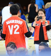 2013.06.08 11: 29독수리 팬들, '류현진 응원하며 기념촬영 중~'