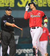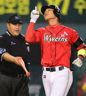 2013.06.11 21: 40김상현,'세레모니하느라 배트는 못 받아요'