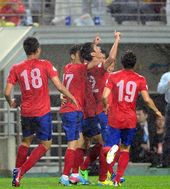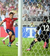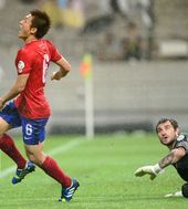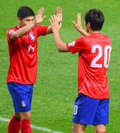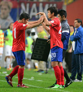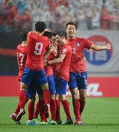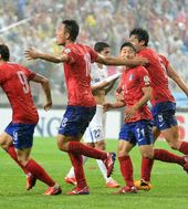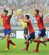 쇼라크메도프의 자책골에 환호하는 태극전사