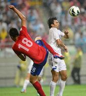 김신욱의 하이킥에 얼굴을 강타 당한 하이다로프