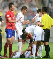 안다리 잡힌 김신욱,'축구야? 씨름이야?'