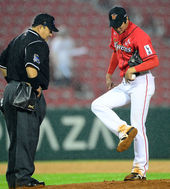 2013.06.11 20: 21김광현,'빗물먹은 흙때문에 피칭이 힘들어요'