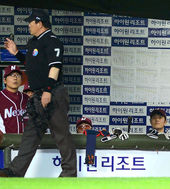2013.06.12 20: 15문승훈 주심, 심판 판정에 불만에 불손한 행동을 한 김병현 퇴장