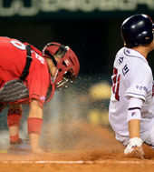 2013.06.13 20: 31정수빈,'악송구 틈타 홈에서 세이프'