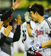 2013.06.14 22: 35끝내기 문선재,'동료들의 화끈한 축하를 받으며!'