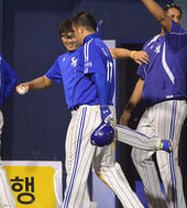 2013.06.14 22: 03끝내기 문선재,'쑥스러운 미소로 하이파이브'