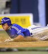 2013.06.14 21: 45홈슬라이딩 배영섭,'모래먼지 일으키며'