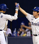 김태균 코치,'승엽아 통산 351호 홈런 축하한다'