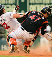 2013.06.19 19: 38최재훈,'강민호 철벽 브로킹에 쿵!'