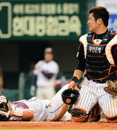 2013.06.19 19: 40강민호-최재훈,'두 포수의 아찔한 충돌'