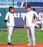 2013.06.19 17: 02김기태 감독-차명석 코치,'마산구장은 날씨가 참 좋네'