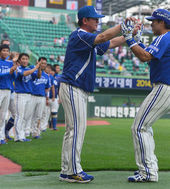 2013.06.20 19: 40'352 홈런' 이승엽, '류중일 감독과 동료들의 축하'