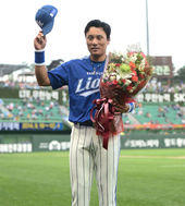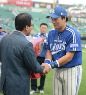 2013.06.20 19: 47이승엽, '352홈런 대기록 달성 축하 꽃다발 받으며'