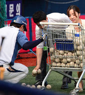 2013.06.20 16: 53정순주 아나,'선수들과 함께 배팅볼 정리'