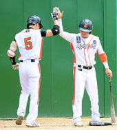 2013.06.22 12: 03번개야구단,'선취 득점 하이파이브'