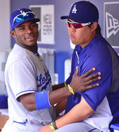 2013.06.24 05: 31류현진,'괴물 푸이그 재롱에 미소'