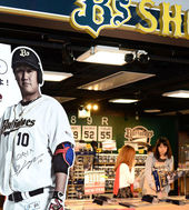 오릭스 상품점 앞에서 팬들을 맞이하는 '빅보이' 이대호의 입간판