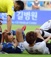 2013.06.29 19: 23남준재-김대호,'같은포즈 다른곳 고통 호소하는 두사람'