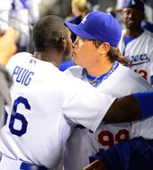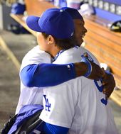 2013.06.30 13: 42라미레스,투구 마친 류현진과 뜨거운 포옹