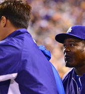 2013.07.04 14: 03우리베,'현진이! 내 욕이라도 하나?'