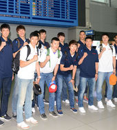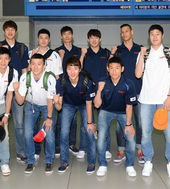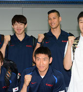 2013.07.05 08: 54출국을 앞두고 파이팅을 외치는 남자농구대표팀