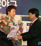 2004.11.08 00: 00꽃다발 건네는 김재박 감독