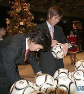 2004.12.26 00: 27축구공에 사인하는 조재진과 김동진