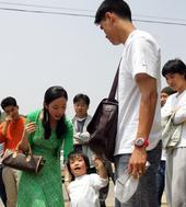 2005.05.23 11: 50설기현에게 손을 흔드는 부인과 울고 있는 아들