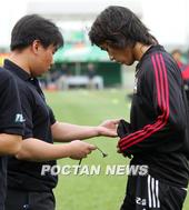 2005.05.23 11: 49훈련 중 땀 테스트 패치를 중간 점검하는 박주영