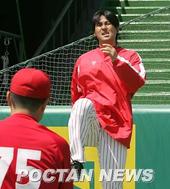 2005.05.23 11: 49[현역 복귀한 조성민의 훈련 현장] '목표는 마운드에 서는 것'