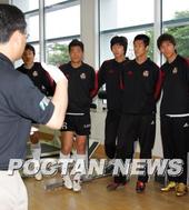 2005.05.23 11: 49'게토레이 땀 테스트'에 앞서 설명을 듣고 있는 FC 서울 선수들