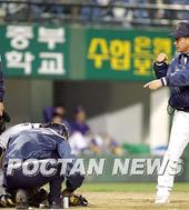 2005.05.23 11: 51김경문 감독,'이건 송구 방해 아닌가'