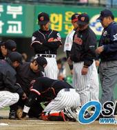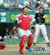 2005.05.27 12: 22방망이에 팔을 부딪힌 롯데 포수 강민호