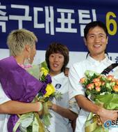 2005.06.10 10: 29카메라 플래시 세례를 받는 대표선수들