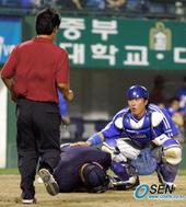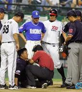 2005.06.16 22: 19공에 맞고 쓰러진 최수원 구심