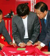 2005.06.27 17: 32'쓰나미 자선 경기' 유니폼에 사인하는 박지성
