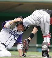 2005.07.09 21: 10충돌한 뒤 쓰러진 조동화와 김강민