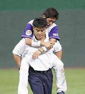 2005.07.09 21: 33트레이너의 등에 업혀 나오는 조동화
