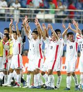 우승이라도 한 듯 기뻐하는 북한 선수들