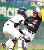 2005.08.02 20: 47희생플라이로 홈을 밟는 최동수