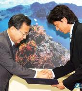 2005.08.04 17: 39'한일 축구 친선대사' 홍명보와 정동채 문화관광부 장관