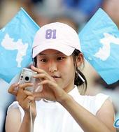 2005.08.04 19: 18한반도기를 머리 양쪽에 꽂은 여성팬