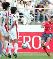 2005.08.04 20: 57북한 스크럼에 걸리는 홍경숙의 프리킥