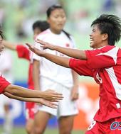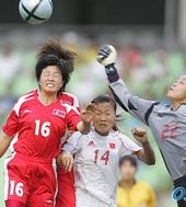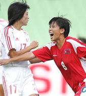 2005.08.06 22: 22북한여자축구선수들, ‘응원해 줘서 고맙습네다’