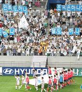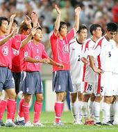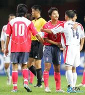 2005.08.14 21: 29동아시아선수권 때와는 상반된 모습의 남북 선수들